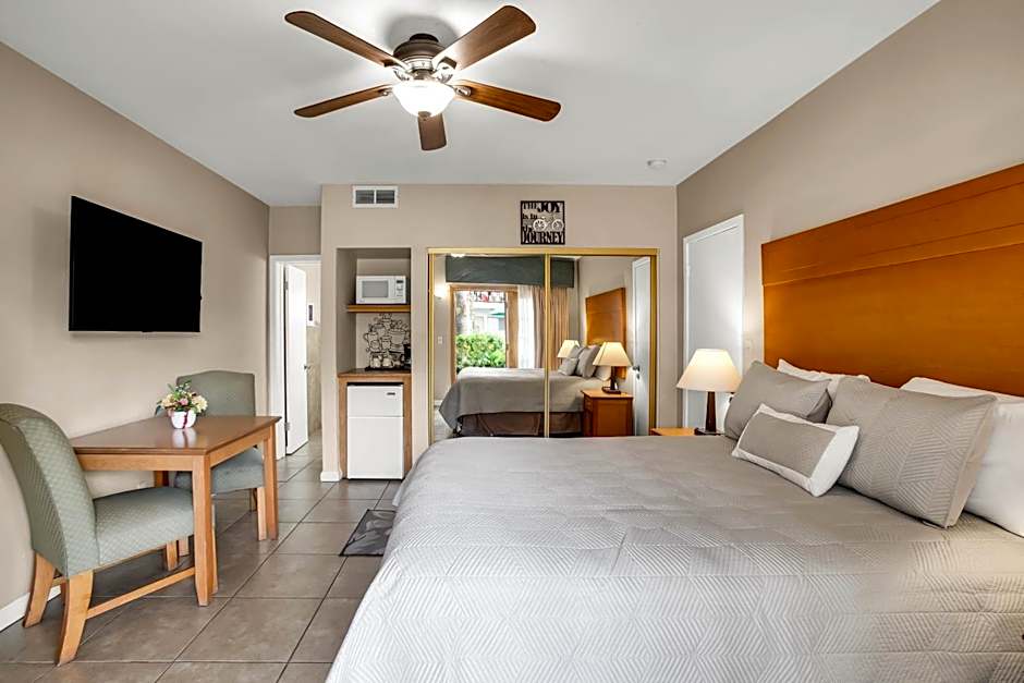 The hot tub is a top feature of this suite. Boasting a private entrance, this air-conditioned suite includes a kitchen, 1 bedroom and 1 bathroom with a bath and a shower. The suite's kitchen, which has a refrigerator and a microwave, is available for cooking and storing food. Featuring a patio, this suite also offers a tea and coffee maker, a wardrobe and a flat-screen TV with cable channels. The unit has 1 bed.